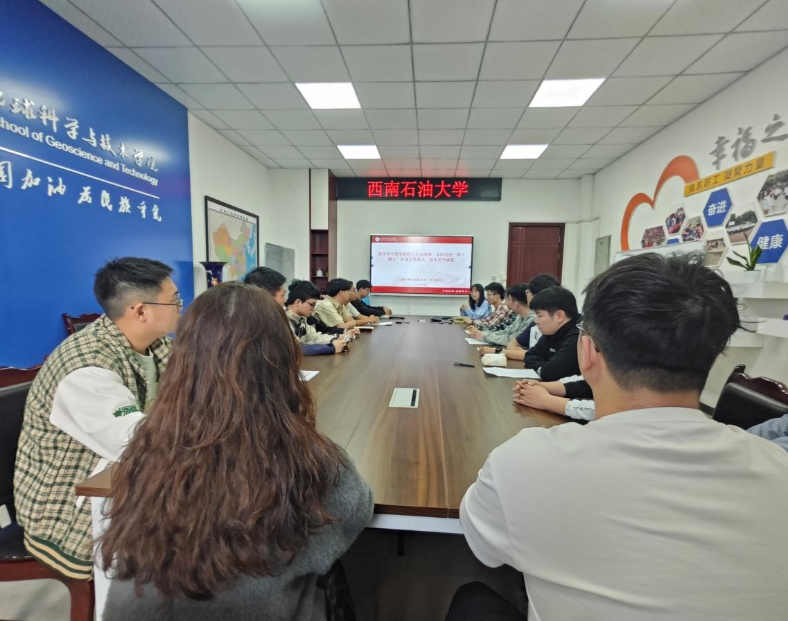 本次讨论主题为“围绕学习贯彻党的二十大精神,深刻领悟“两个确立”的决定性意义,筑牢思想根基”。会议伊始,史格老师指出“两个确立”是人民的选择、历史的选择,是深刻总结党的百年奋斗、党的十八大以来伟大实践得出的重大历史结论。作为地质学子,我们要坚持学好专业知识,练就过硬本领,在新时代新征程上展现新气象新作为。在小组讨论中,同学们根据自己学习的知识,结合老师所讲内容,针对如何学习宣传贯彻党的二十大精神,深刻领悟“两个确立”的决定性意义分享了各自的学习感悟。王逸兴同学提到:“我们要以党的二十大精神为指引,坚持党的领导,不断加强理论武装,提高政治判断力、政治领悟力、政治执行力,确保在思想上、政治上和行动上同党中央保持高度一致。”焦世祥同学谈到:“作为一名石油勘探领域的学生,要永做党和国家最信赖的基础力量,牢记习近平总书记嘱托,端牢能源饭碗,建设能源强国,解放思想、敢闯敢试、锻炼能力,努力实现高水平科技自立自强,为保证国家能源安全贡献青春力量。”