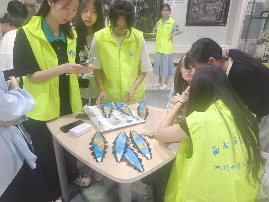 此次地学科普系列活动内容丰富多样,包括岩石切片观察活动、垃圾分类问答游戏、中国地形拼图以及套圈获积分等多个环节。GIS学会的同学们发挥专业特色,积极参与其中,为活动注入了新的活力。
