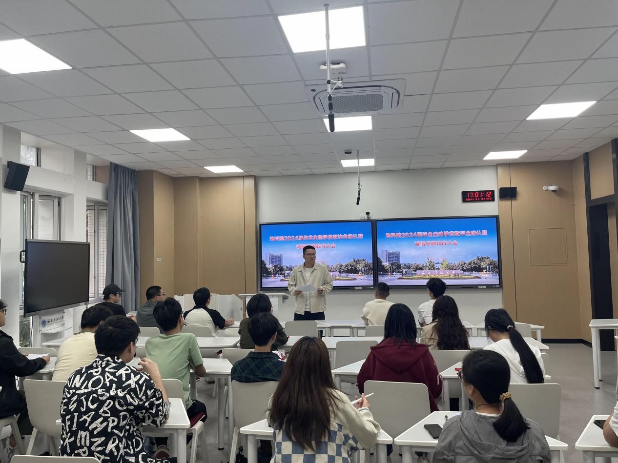 为认真落实和推进贷款毕业生相关工作,进一步加强贷款学生的诚信感恩意识,5月7日,地科院召开“毕业资助一堂课”主题班会暨诚信感恩教育大会,2024届国开行贷款毕业生参加,会议由本科毕业班辅导员周雅倩和黄爽组织。