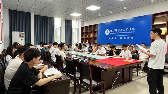 5月28日上午10:00,地科院硕士生2021级大地无垠党支部在明辨楼A302开展党纪学习教育暨预备党员转正大会。会上,党支部书记李明科对新修订的《中国共产党纪律处分条例》进行了讲解,同时讨论了陈霖等8位同志转为正式党员的申请。本次会议由党支部副书记刘佰衢主持。