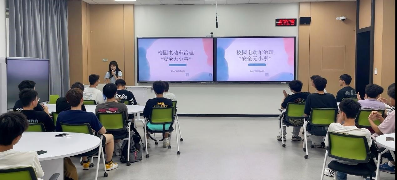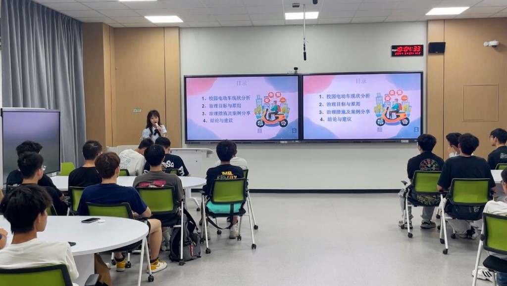 须薇晗带领全体同学学习了关于《西南石油大学摩托车、电动自行车交通管理办法》的有关规定。从校园电动车现状分析,治理目标与原则,治理措施及案例分享以及结论与建议四方面讲述,使同学们收获颇丰,对学校的摩托车,电动自行车交通管理有了更加深刻的认识。
