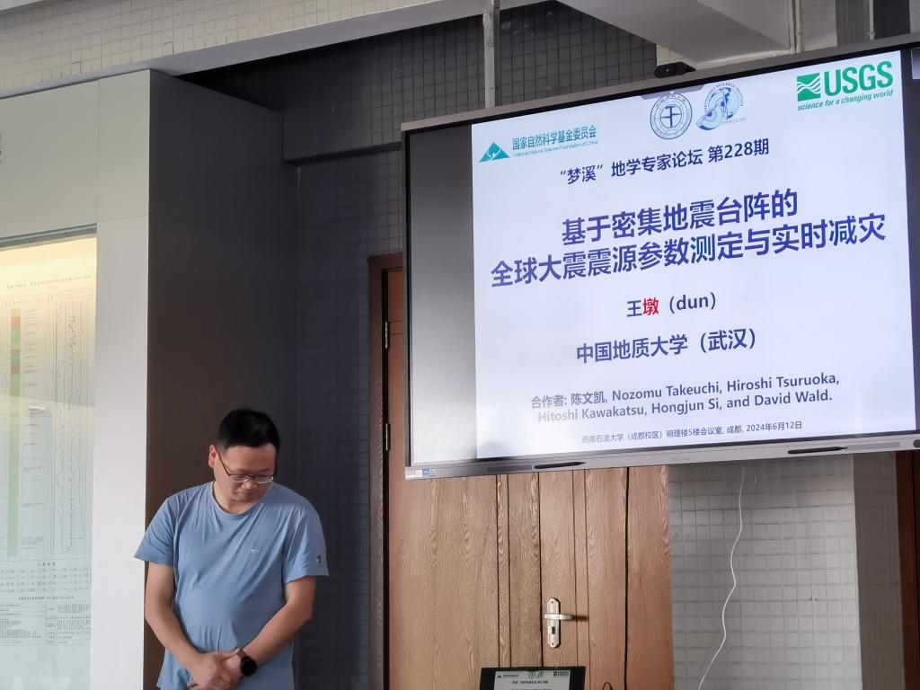 2024年6月12日下午16:00,地球科学与技术学院邀请中国地质大学(武汉)的王墩教授,在我校明理楼C区五楼科研教学基地进行了一场以“基于密集地震台阵的全球大震震源参数测定与实时减灾”为题的专题报告。此次讲座吸引了众多师生前来聆听。