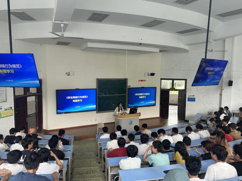 首先,辅导员李佳芮老师就目前网络上存在的不良现象进行了剖析,如网络欺凌、虚假信息传播、网络诈骗等,并强调了遵守网络行为规范的重要性,通过案例分析、互动问答等形式,深入浅出地讲解了如何保护个人隐私、识别网络诈骗、以及如何在网络空间中传播正能量。她提到:“作为新时代的大学生,我们应该成为网络文明的倡导者和践行者,共同维护一个清朗的网络空间。”