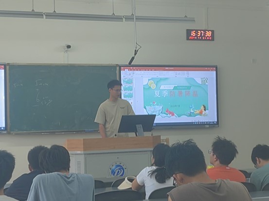 其次,夏季是溺水事故的高发季节,学校特别强调了防溺水的重要性,向学生们传授了游泳安全知识,包括如何正确使用救生设备,以及在遇到溺水情况时的自救和互救方法。不仅如此,辅导员还细心为我们科普了夏天高温防暑的小常识。