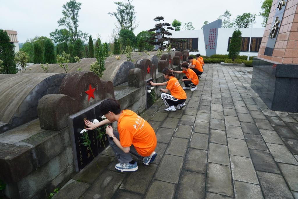 英雄烈士是民族的脊梁、时代的先锋,是一个民族、一个国家永远的精神丰碑。为深刻理解红色革命文化,缅怀革命烈士,团队前往隆昌市烈士陵园举行向烈士献花与祭扫活动。活动现场庄严肃穆,全体队员排着整齐的队伍走进烈士陵园,来到烈士纪念碑前,为革命事业献身牺牲的英烈默哀献花。随后,大家来到烈士墓碑前,鞠躬致敬,轻轻擦拭墓碑上的灰尘。