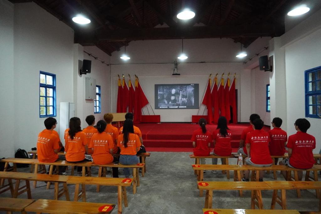 隆昌气矿是毛主席唯一视察过的石油企业,也是唯一留下蹲姿照片的地方。在毛泽东主席视察隆昌气矿纪念馆,“掷地有声”科普团队一行参观了炭黑车间旧址“327车间”、“最光荣的火房”、跃进大礼堂以及四川石油会战史馆。队员们在毛主席蹲下视察的地方缅怀伟人,回望先辈们艰苦奋斗、求实创新的光辉历程,深刻了解新中国建立之初克服重重困难、成功开发天然气资源的历史过程。同时,团队充分利用爱国主义教育基地资源,结合专业所学,录制《我心中的思政课》等主题作品,打造“实践中的红色课堂”。