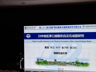 我院地质工程2022级硕士研究生景浩于会场就《川中地区茅口组鞍形白云石成因研究》作学术交流。