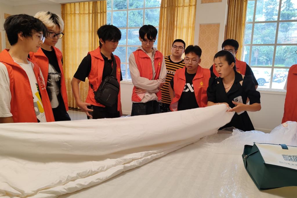 图3成员们欣赏成品蚕丝被