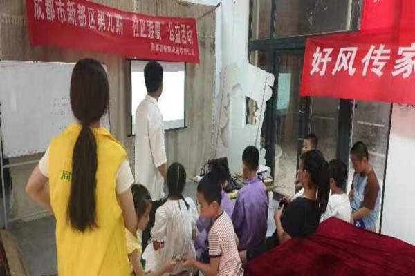 图一 志愿者正在给社区儿童讲解生活常识