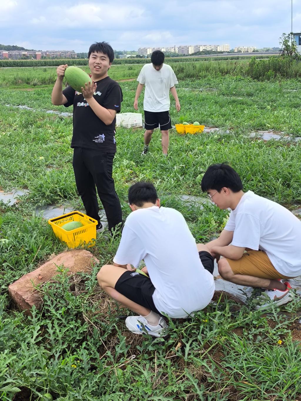 图 队员们在瓜田体验采摘西瓜