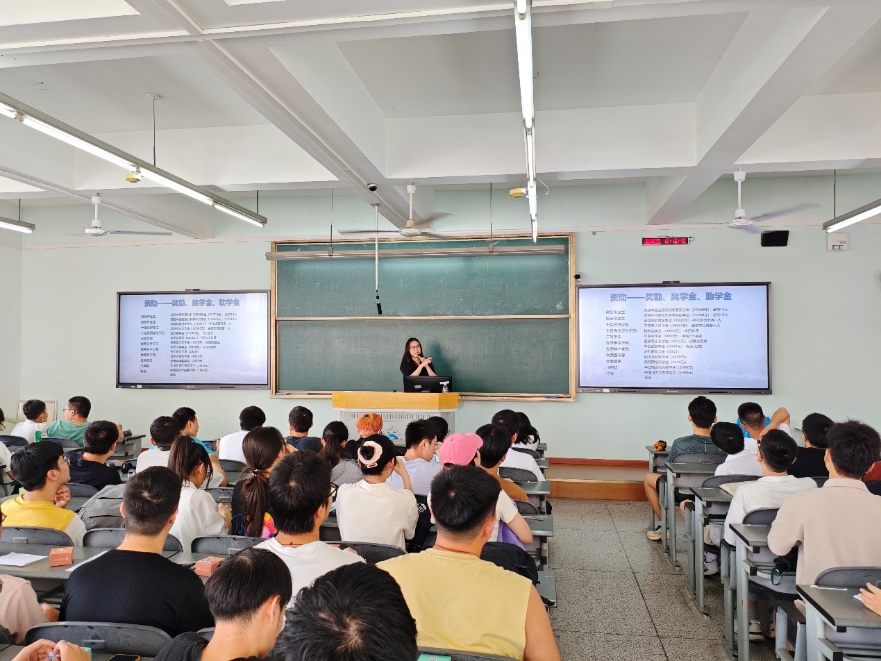 在奖助学金方面,刘杨洁雅强调学校一直高度重视学生资助工作,通过设立多种资助项目,帮助同学们解决经济困难,激励大家努力学习,实现个人梦想。她介绍了奖助学金的申请条件、申请流程以及发放标准,确保同学们能够清楚了解。