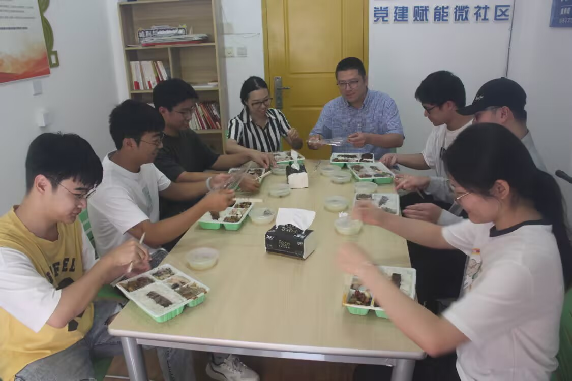 在午餐会接近尾声之际,老师和同学们共同畅谈即将到来的中秋佳节。老师向同学们表达了最真挚的节日祝福,提议大家共同品尝学院定制月饼,在线上与远方的亲人分享喜悦。