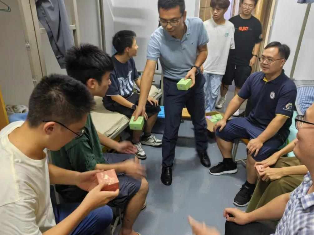 “海上生明月,天涯共此时”,在温馨美好的中秋佳节之际,地科学院的领导、专业课教师以及辅导员们,怀揣着满满的温情与祝福,携带特别定制的中秋月饼。踏上了深入学生生活各个角落的温馨之旅。他们走进了班级、穿梭于寝室的温馨空间、实验室的严谨氛围,乃至实习场所的忙碌身影之中,将学院的关怀与温暖传递到每一位地科学子的心田。在2023级班会上,辅导员如同家人一般,细心询问同学们的日常生活和身心健康状况,叮嘱大家要注意休息,保持良好的生活习惯。他们耐心倾听同学们的心声,对于大家的困惑和需求给予了及时的回应和帮助,让远离家乡的学子们感受到了家的温暖和依靠。
