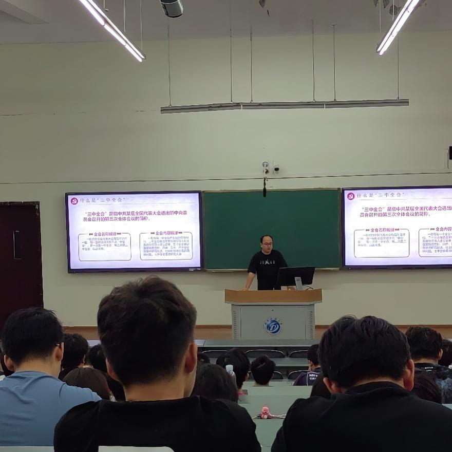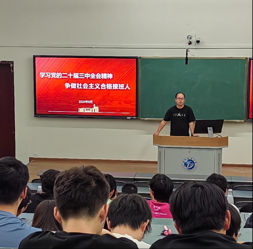 会上,程鑫老师向同学们简要介绍了党的二十届三中全会的召开背景、主要议程及会议概况,帮助大家建立起对全会的基本认识框架。深刻剖析了党的二十届三中全会的核心内容和重要意义,强调这是在我国迈上全面建设社会主义现代化国家新征程、向第二个百年奋斗目标进军的关键时刻召开的一次重要会议,对于统一全党思想、凝聚全国各族人民力量具有重大意义。结合会议提出“科教兴国、人才强国、创新驱动发展战略”,提倡同学们自觉将个人发展的具体目标同强国复兴的宏伟梦想结合起来,深入学习专业知识,积极参与科研项目和课题研究,提升专业能力,建立地质思维,培养解决实际问题能力,同时也需要树立正确的价值观和人生观,积极参与志愿服务和社会实践,提升社会责任感。