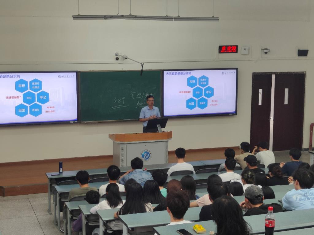 同时,为了将国家发展的大局与同学们的个人成长规划紧密结合,共同绘制未来的宏伟蓝图。此次班会邀请了地科院张勇副书记为同学们进行“一‘研’为定,‘研‘阵以待”的宣讲会。张副书记强调了升学对于同学们个人成长和未来发展的重要性,并鼓励大家以更加饱满的热情和坚定的决心投入到升学准备中。同时,领导还结合党的二十届三中全会精神,阐述了国家对于高等教育和科技创新的高度重视,以及地质科学领域在国家发展战略中的关键地位,为同学们指明了前进的方向。