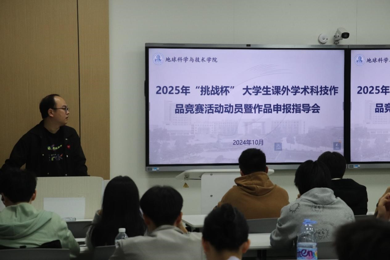 为了进一步激发学生的创新思维,挖掘科研潜力,选拔并培育省赛和国赛优质项目,10月23日晚,地科院双创中心在明辨楼C108教室成功举办了举办2025年“挑战杯”大学生课外学术科技作品竞赛活动动员暨作品申报指导会。。