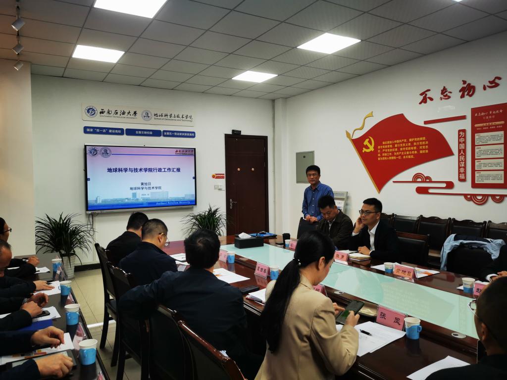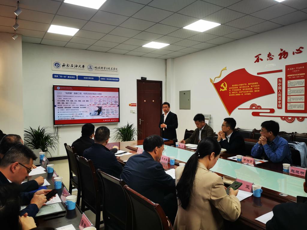 地科院党委书记赵晓明、院长黄旭日分别从党建工作、思政工作、学生培养、学科建设、师资队伍、科研工作等方面汇报了学院的工作情况。近年来,学院构建“1234567”党建工作法,形成了“四融四体”党建工作模式,取得了一系列党建成果,获批四川省党建工作标杆院系、四川省课程思政标杆院系,荣获四川省高校先进基层党组织、四川省优秀党务工作者。学科建设方面,地质资源与地质工程入选四川省双一流建设贡嘎计划学科名单,研究生培养质量稳步提升,获中国石油教育学会石油高等教育(研究生)教学成果二等奖2项,连续4年获得AAPG全球助研金,多人获得全国学科竞赛特等奖和一等奖,学位论文抽检连续多年合格率100%。专业建设方面,一流课程建设获得突破,获国家级一流课程认定2门,省级一流课程累计13门,1门课程获批四川省首批高阶课程,1门课程获批为四川省高等院校来华留学精品课程,新出版A级出版社教材13部,近年来在全国各类教师教学竞赛获19项,其中一等奖及以上10项。科研方面,科研经费快速增长,自然基金重点项目、国家重点研发计划项目取得突破,2020年以来,获批国家重点研发计划3项,国家自然科学基金79项,其中国家重点专项、联合基金7项,获得获省部级及以上科技奖励74项,其中省部级特等奖和一等奖30项,新增省部级平台4个。学生工作方面,践行落实“讲赛践”,构建五化五维育人模式,推动时代新人铸魂工程,近四年深造率达、就业率保持在学校前列。师资队伍方面,2021年以来新增省部级人才38人,但国家级人才有待加强,学院后续将进一步加强科研团队和教学团队建设,帮助青年教师融入团队,提升科研和教学能力。