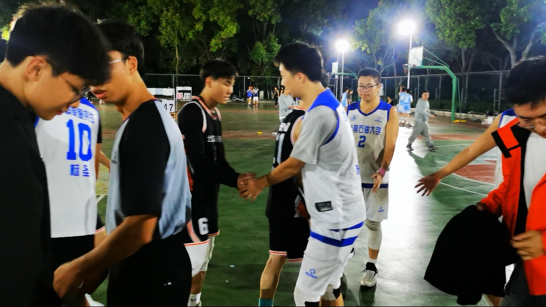 比赛结束后,地科院的队员们欢呼庆祝,场上的气氛热烈。两院球员相互握手致谢,相互鼓励,彰显学院之间的良好友谊。本届研究生杯篮球赛已经来到淘汰赛的第二轮,此前,地科院在小组赛中表现出色,连续三场比赛全胜,以小组第一的身份顺利晋级淘汰赛。然而,在淘汰赛第一轮的比赛中,地科院意外失利,未能延续小组赛的辉煌战绩。这场胜利对于地科院研究生篮球队来说无疑是一场极大的鼓舞,再次展现了地科院研究生出色的篮球技术和顽强拼搏的地科精神。