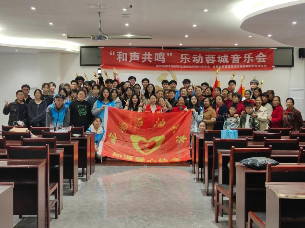 为深入学习贯彻党的二十大精神,积极践行新时代青年的社会责任与担当,充分发扬石大学子争做“青年实干家”的优良传统。2024年11月9日,西南石油大学知源爱心协会携手志愿歌手们走进成都市桂湖街道燕塘村党群服务中心举办“和声共鸣”乐动蓉城音乐节,知源爱心协会成员张曜琳担任主持人,社区居民积极参与。