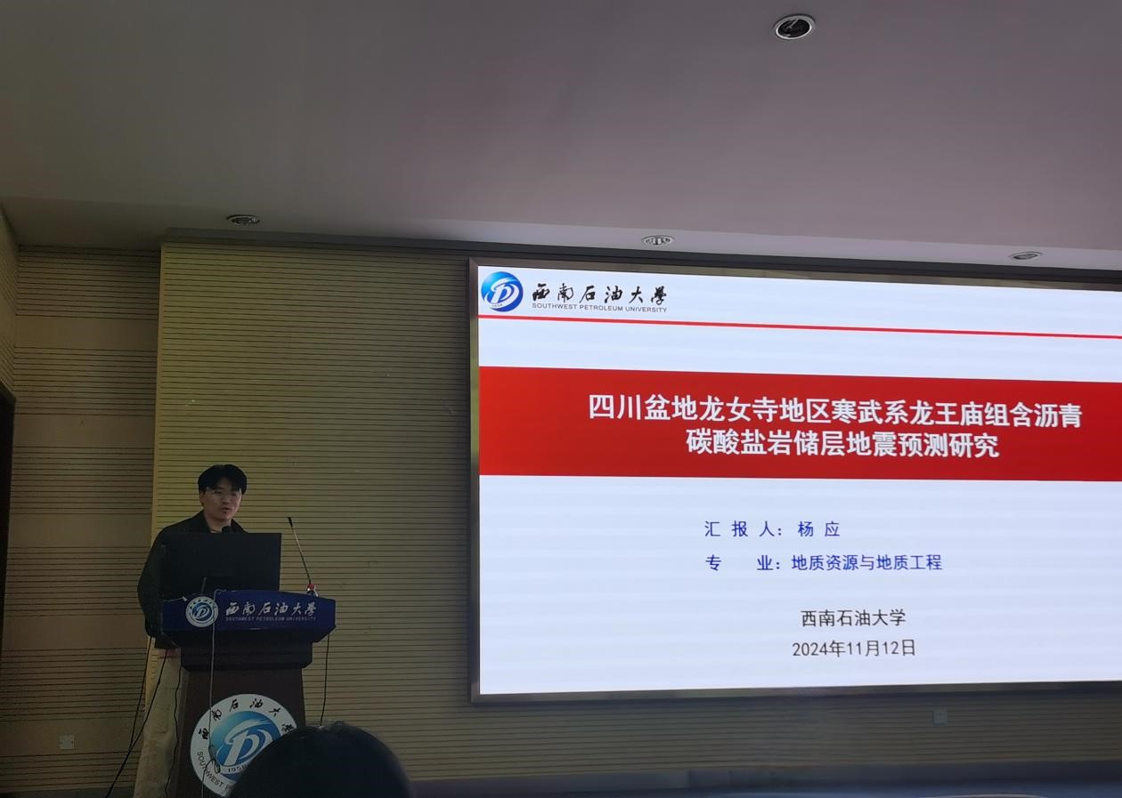 2024年11月12日14:30~16:30,在明志楼B105开展了主题为“四川盆地龙女寺地区寒武系龙王庙组含沥青碳酸盐岩储层地震预测研究”的博士论坛讲座,此次论坛由地球科学与技术学院2019级地质资源与地质工程博士研究生杨应作报告,地科院石工院研究生积极参与了本次讲座。