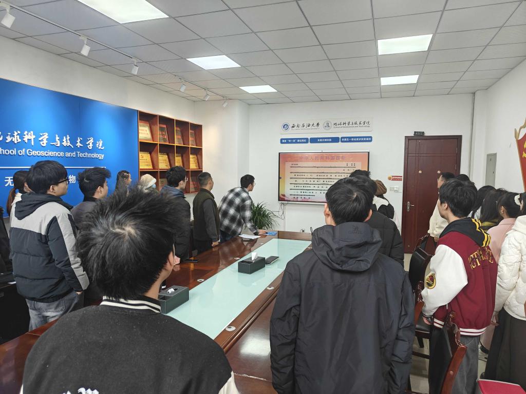 11月18日,地科院本科生资源勘查工程专业不忘初心党支部在明辨楼A302会议室召开预备党员转正大会。论预备党员陈唐满等5名同志申请转为正式党员的问题。党支部书记刘杨洁雅老师及支部全体成员参会。