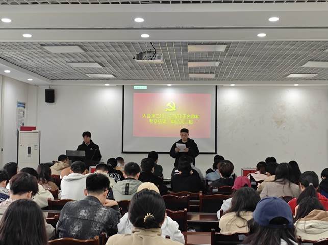 2024年11月16日13:00,地科院硕士生2024级大地无垠党支部在明辨楼D404召开党支部预备党员转正大会。本次大会由党支部副书记王鑫同志主持,党支部书记李明科老师及34名中共党员、18名中共预备党员参加。