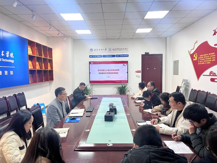 12月4日上午,地科院在明辨A302会议室召开学生党支部书记会议,地科院党委副书记张勇、各学生党支部书记参加了培训会,活动旨在深入贯彻党的二十届三中全会精神,研究部署学生党建双创和“一支部一品牌”建设工作。