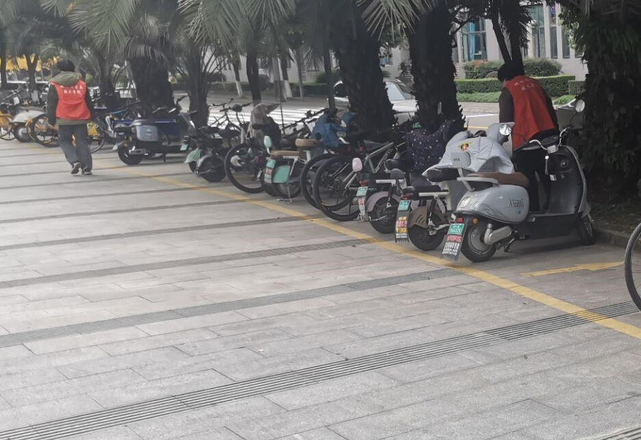 图2志愿者摆放车辆