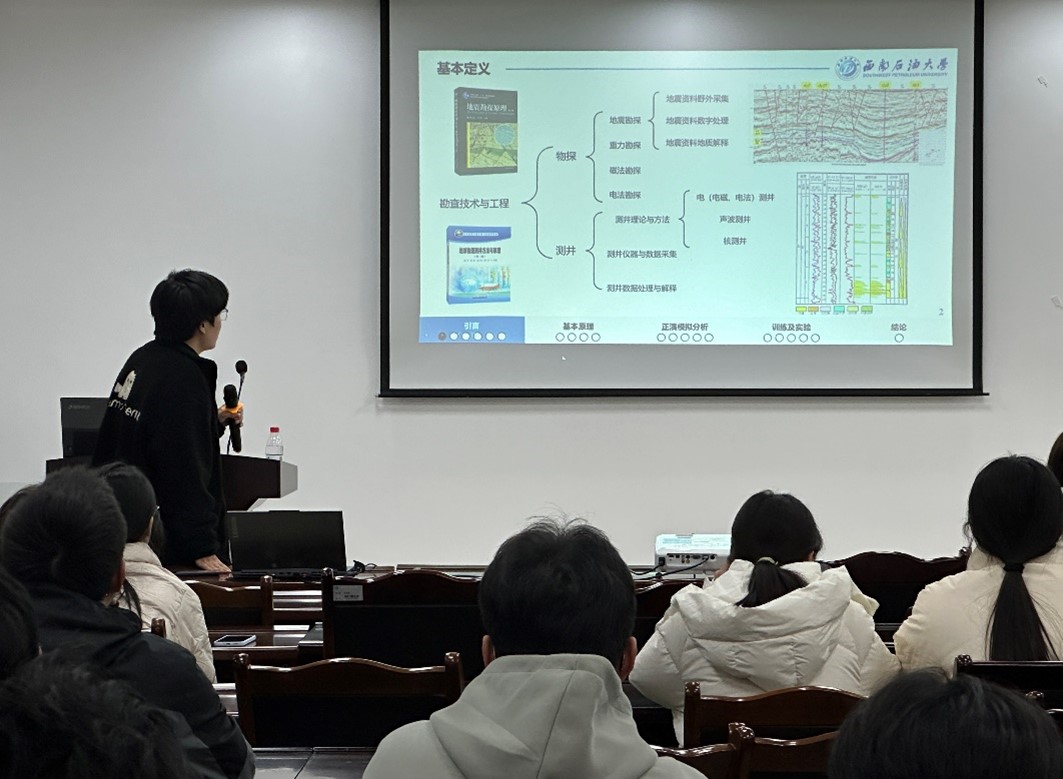 12月6日晚8:00,西南石油大学SEG学生分会首次举办的学术交流讲座在明辨楼D404举行。本次讲座的主题为“人工智能在河流相砂体识别中的应用”,由地质资源与地质工程专业2024级博士研究生张泽鑫担任主讲。
