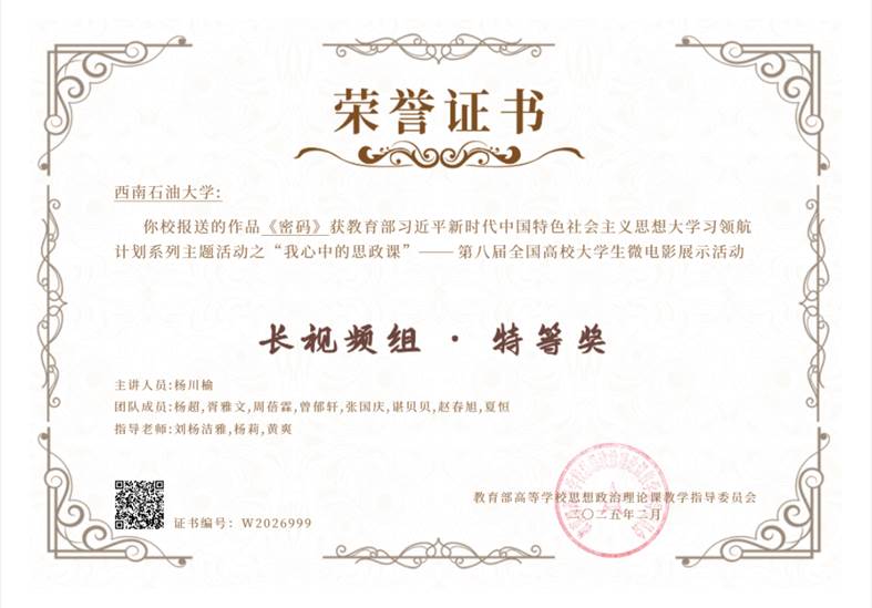 近日,由教育部办公厅组织的习近平新时代中国特色社会主义思想大学习领航计划主题教育活动系列获奖名单出炉,其中,我院参赛作品《密码》从全国1006所高校提交的3134部微电影作品中脱颖而出,荣获“我心中的思政课”——第八届全国高校大学生微电影展示活动长视频组全国特等奖(全国共16部),创学校在该项赛事中的最好成绩。