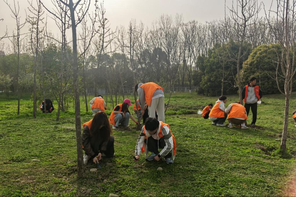 活动当天,地科院志愿者们穿着统一的志愿服装,由委员带领,有序地对学子林的树木进行了细致的检查和维护。委员们提前分发劳动工具,志愿者们手持工具,分工明确,有条不紊地展开了清理工作。有的挥锹松土,有的提水浇灌,他们掰除枯枝,清理杂草,确保每一棵树都能焕发出春意的生机。大家齐心协力,共同为校园的绿化贡献着自己的一份力量。