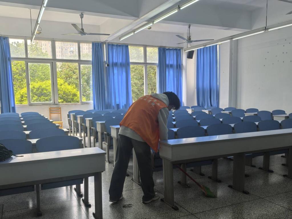 活动当日,太阳高照,热浪袭人,但这并没有阻挡志愿者们改善校园环境的决心。他们早早地来到指定地点集合,在工作人员的指导下签到、穿戴马甲、领取清扫工具。志愿者们被分为三个小组,分别打扫一楼至三楼的教室与走廊。他们手持扫帚、拖把、抹布等清扫工具,仔细清扫着每一个角落,不放过每一片纸屑。除此之外,他们还将每间教室里的桌椅都摆放整齐、将黑板擦拭干净、将粉笔补齐摆正。经过志愿者们半个小时的辛勤付出,原本脏乱的教学楼环境成功焕然一新,变得干净明亮、整齐有序。