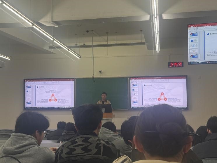 朱原老师以“创新思维与实战方略”为主题展开系统讲解。通过对国创赛备赛要点解析,梳理中国国际大学生创新大赛发展脉络,深度解析赛事组别设置与评审维度;并从做项目的基本逻辑即项目是什么、为什么做项目和怎么做项目分别开展讲述,最后通过结合往届金奖项目,生动诠释了做好一个真正的好项目需要保持突破常规的想象力,更要注重技术转化的可行性。在互动环节,朱原老师针对学生团队提出的问题作出专业性的解答。