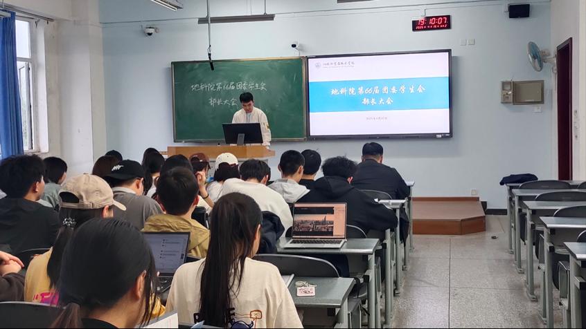 2025年4月16日,地科院部长大会在明德楼A204顺利召开。本次会议旨在梳理上学期及本学期各部门工作,总结经验,探讨部门安排及活动开展过程中遇到的问题,并共同谋划未来发展。会议主要由心理服务与文艺中心谌贝贝和青年实践中心康熊佳主持,各部门主席和部长悉数出席。