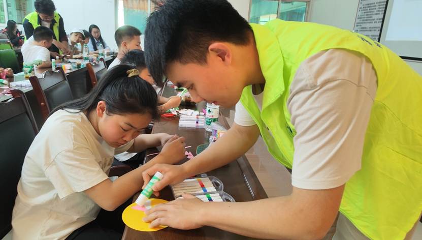 结束了理论知识部分的学习,我们通过制作手工地球扇,让孩子们在有限的纸片上肆意放纵青春的想象力,不在拘泥于传统的“地球”,在这里我们看到了孩子们的“零食地球”、“干净的地球”、“充满了绿地的地球”,同时我们也邀请小作者们分享自己的创作感言,其中令我们印象深刻的是一位小朋友的“干净的地球”——“她想要一片干净的沙滩、干净的房子、干净的河流和海洋”当被问及想和谁一起住在这座星球上时,‘万物生灵’如一道惊雷响彻志愿者的脑海,我们很难想象这是一位仅仅小学二年级的女生回答,其内心格局之宏大,不正是我院“大地无垠”精神的绝佳体现,我想这节课不仅仅是我们为小孩子们上课,更是孩子们在用自己的一言一行反作用这我辈。