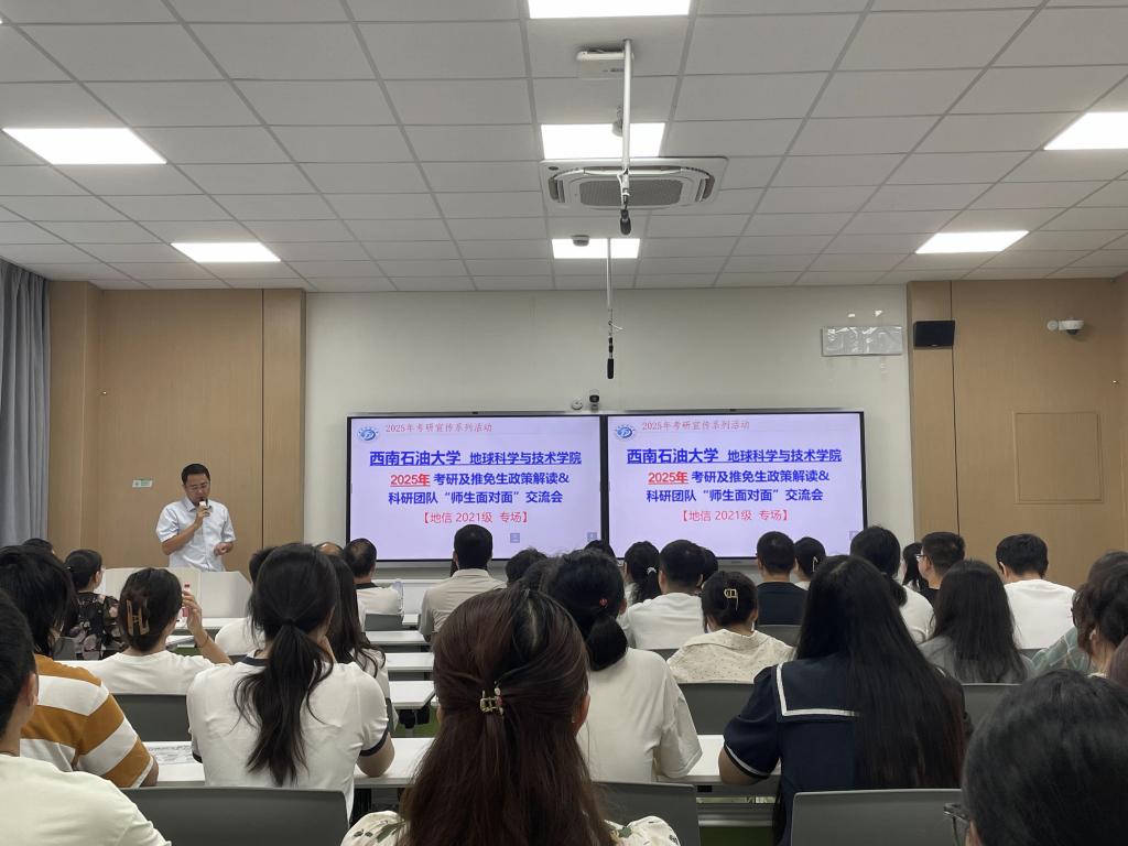 在考研备考前期的关键阶段,学院第一时间开展分专业考研动员大会,地科院副院长刘宏带领各个科研团队的老师们走进教室“传经送宝”,为同学们提供全方位的指导和建议。“动员会上,老师们不仅系统梳理了我们专业各科研团队的研究特色,还现场为同学们‘把脉问诊’,正是在这样的精准指导下,我明确了研究方向。”2021级勘查技术与工程专业的黄国苹回忆道。得益于这次动员会的“牵线搭桥”,他顺利找到了心仪的导师,提前进入科研团队学习。如今,这位曾经的“考研新手”已蜕变为专业能手,与团队成员一起斩获了第九届全国大学生测井技能大赛石油类高校本科生组一等奖的好成绩。