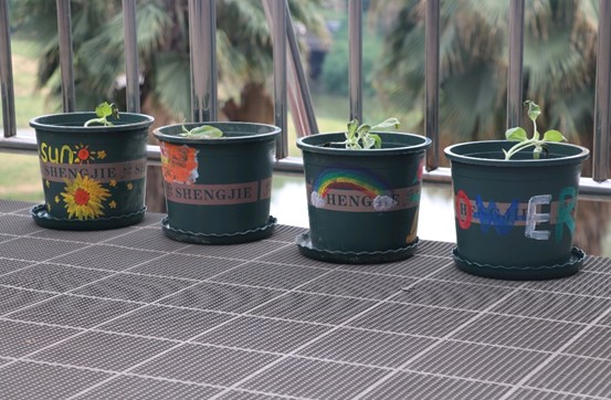 活动伊始,同学们充分发挥想象力与创造力,利用活动现场精心准备的颜料与绘笔,对自己的花盆进行DIY创作。在描绘花盆的过程中,大家一边勾勒图案,一边与同伴分享自己对向日葵生长的期待,现场氛围轻松愉悦,欢声笑语不断。一个个原本朴素的花盆,在同学们的巧手下变得色彩斑斓、充满个性,承载着大家对美好未来的憧憬。勘查技术与工程专业2023级的姚成程同学难掩激动之情,她表示:“这次向日葵栽培活动让我触动万分,向日葵在我心里一直是希望的象征。这次活动让我体验到了亲手种下希望的美好,我相信在盛夏时节我的希望之花会开的绚烂,开的热烈。”