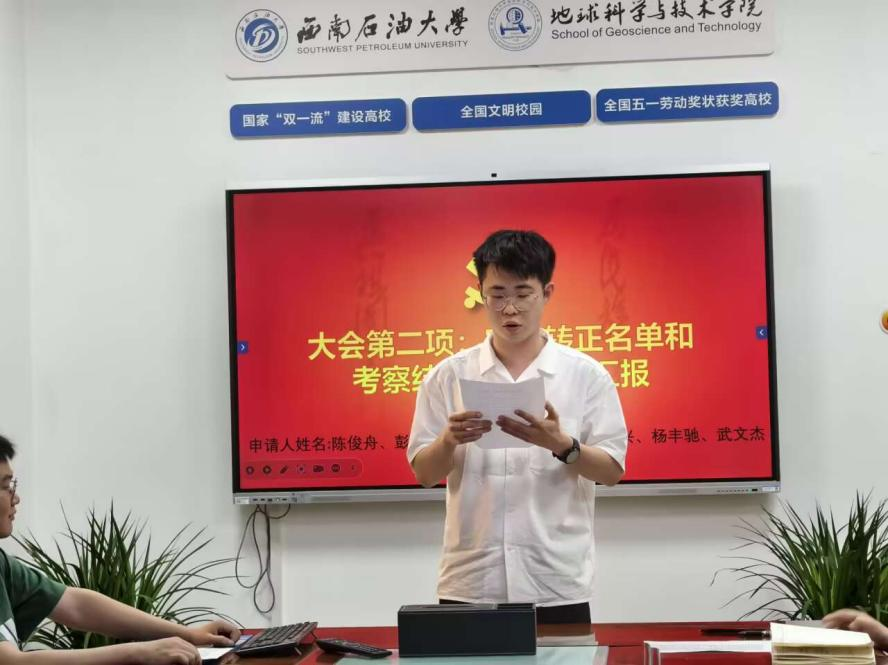 为严格党员发展程序,加强党员队伍建设,5月27日,地科院硕士生2022级格物致知党支部在明辨楼A302召开预备党员转正大会。党支部全体党员、转正申请人以及党支部书记史格老师参会。本次议题主要讨论是否同意陈俊舟、彭晓徐、李月娥、云志强、王逸兴、杨丰驰、武文杰7位中共预备党员按期转正的问题,会议由支部副书记池皓诣主持。
