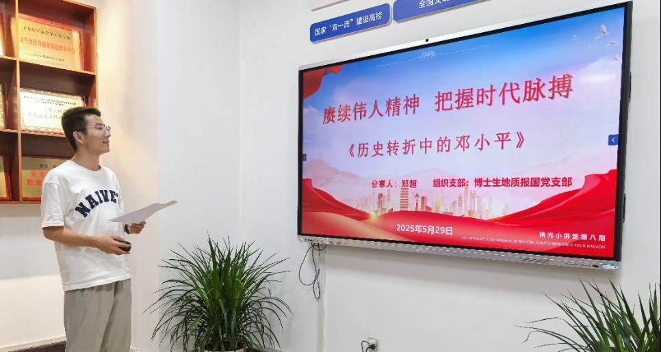为深入学习贯彻习近平新时代中国特色社会主义思想,持续推进党建与团建的有机融合,全面落实学校“讲赛践炼”育人体系,5月29日晚,地科院学生党建品牌活动“拾光小讲堂”第八期在明辨楼A302会议室顺利举行。本期活动由博士生地质报国党支部承办,分享书籍为《历史转折中的邓小平》。