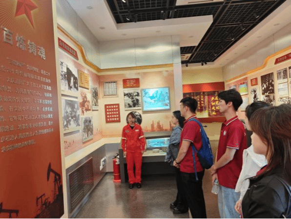 师生们还专程探访了“三老四严”精神的发源地——中四采油队。从60年代石油工人发现压力异常后一丝不苟、反复排查隐患的经典故事,到现代采油班组实时更新的电子参数屏旁醒目的“严细实”警示贴,队员们真切感受到“三老四严”这一职业信条历久弥新的强大生命力。“智能采油时代,数据容不得虚假,操作来不得马虎!”讲解员的强调,让学子们深刻理解到,严谨求实、高度负责的作风在任何时代都是事业成功的基石。