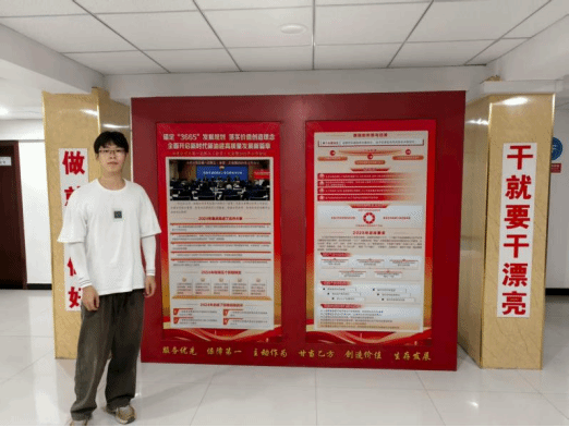 在室内展板区域,团队深入了解油田“3665”发展规划。围绕价值创造理念,展板清晰呈现2024年工作成果与2025年目标,“服务优先、保障第一”等标语,传递着油田人“干就要干漂亮”的拼搏决心。