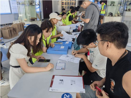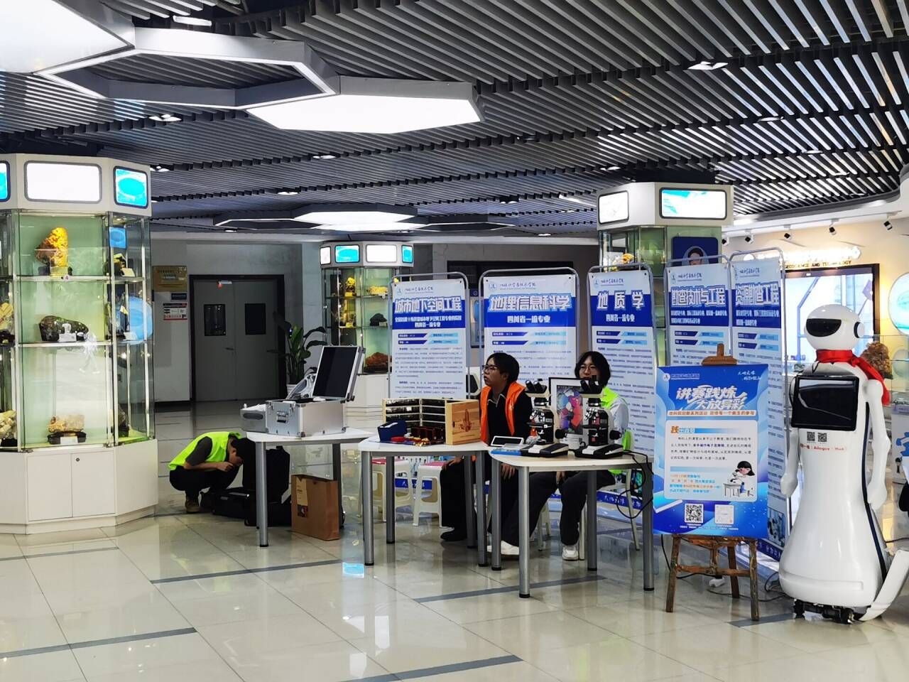 在材料审核环节,志愿者细心核查录取通知书、身份证等材料,并耐心解答新生关于入学流程、课程安排和科研准备等方面的问题,引导新生顺利完成报到各环节。学院还为新生发放了崭新的校园卡、新生手册,并准备了地科院专属入学礼物——地科院定制星空小夜灯。这份专属礼物既体现了学院对新生的暖心关怀,也具有特殊的纪念意义。报到现场气氛热烈温馨,新生们脸上洋溢着期待与喜悦。地科特色展览区集中展示了学院的典型岩石标本及地科院定制岩石工艺品,吸引新生驻足观看,进一步激发了他们对地质学科的探索热情。