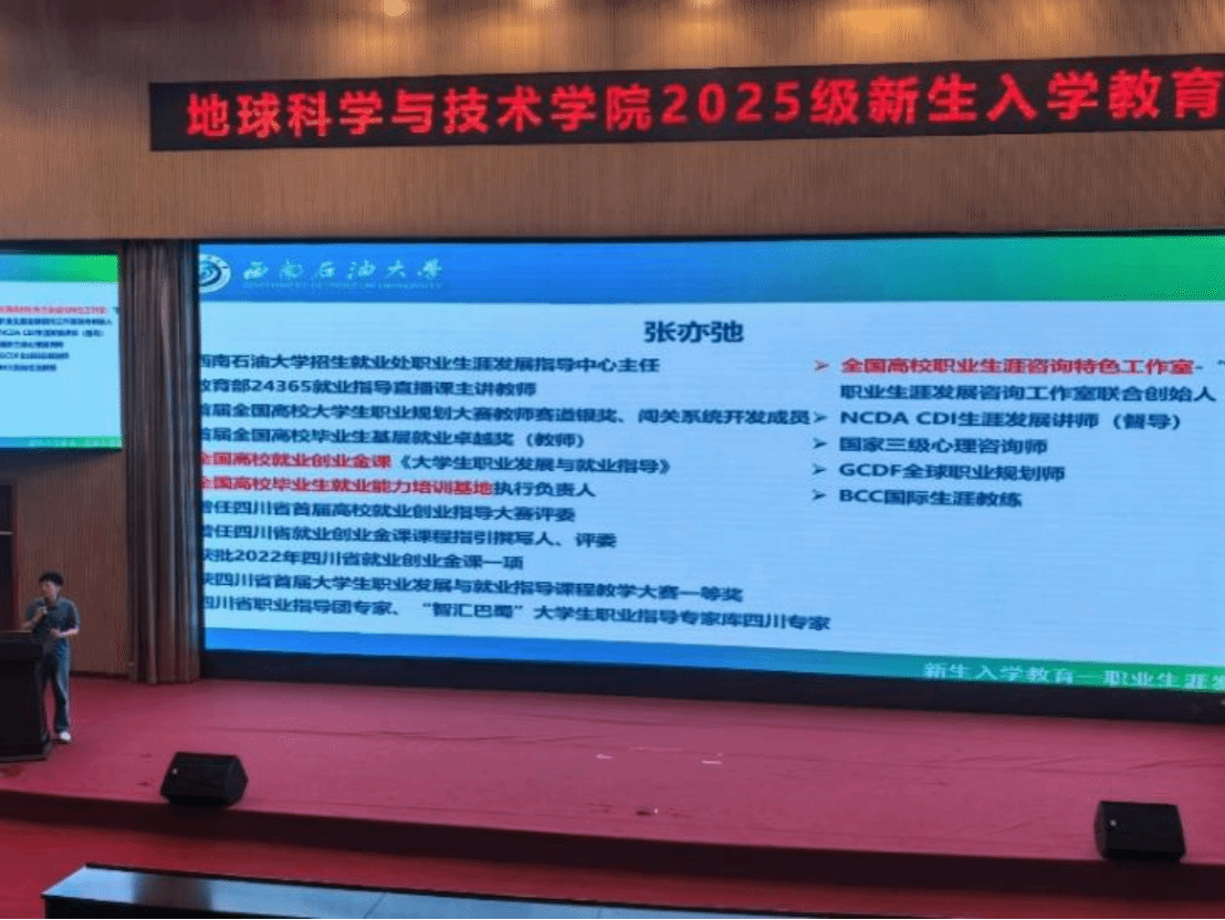 为帮助2025级新生快速适应大学环境、明确发展方向、树立科学的生涯规划意识,9月15日下午,地球科学与技术学院精心组织开展了一场新生入学生涯教育专题讲座,为全体新生带来了一场内容丰富、启迪深刻的生涯引导分享。
