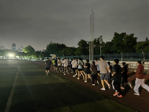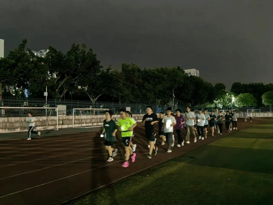 活动路线设定为环一期操场,全程2.4公里。夜跑的领跑员由24级资源勘查工程专业的伏建宇同学与23级资源勘查工程专业的刘鸿图同学担任。在整个跑步过程中,两位领跑员严格控制配速,使全程平均配速保持在6分30秒,既保证了跑步的有效性,又考虑到参与者的体能差异,确保每一位同学都能在轻松舒适的节奏下完成跑步,收获身心的愉悦与满足。