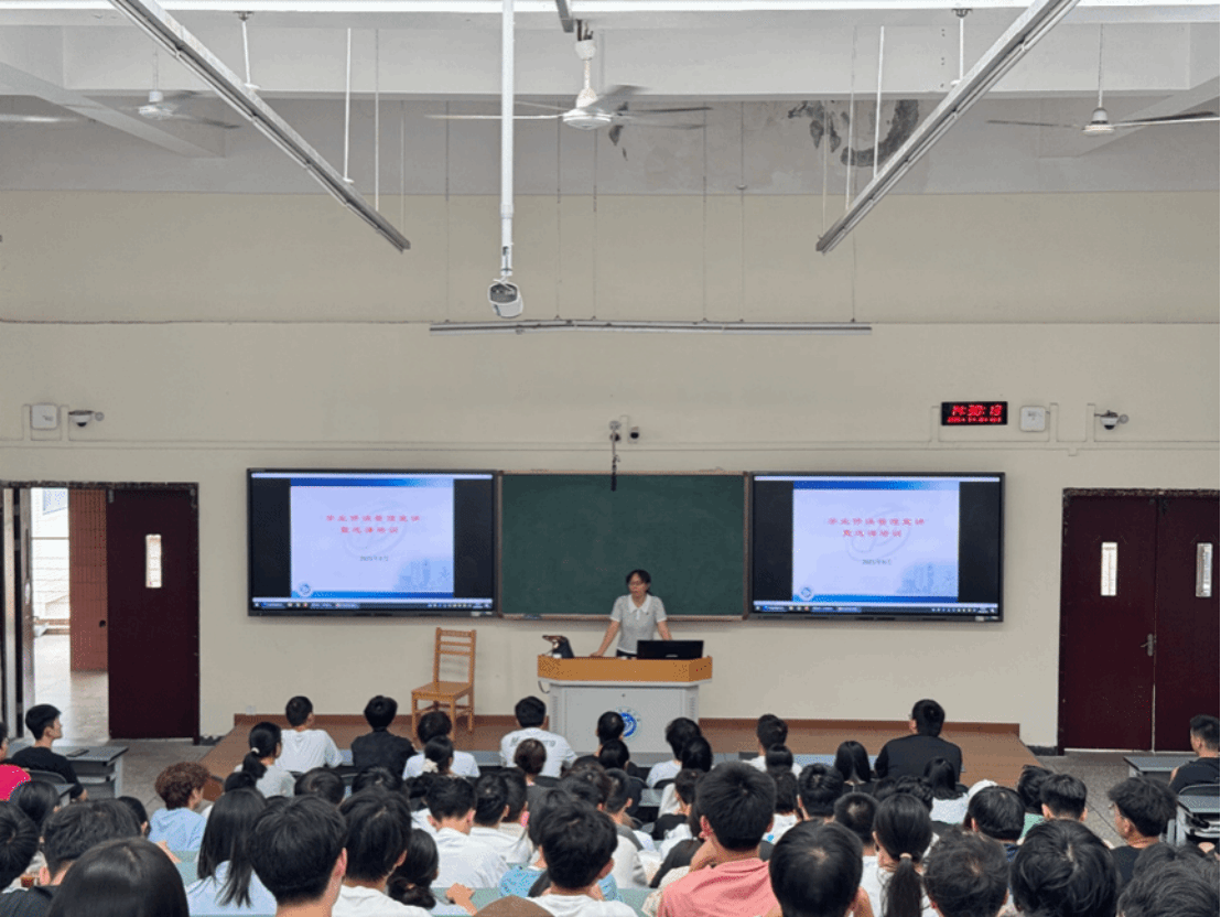 学院关注新生的全面成长与健康发展。在心理健康教育讲座中,学校心健中心余强老师通过互动活动,引导新生正确认识心理健康的重要性,学会积极应对成长中的挑战,完成心态转变,提升“心理体能”。