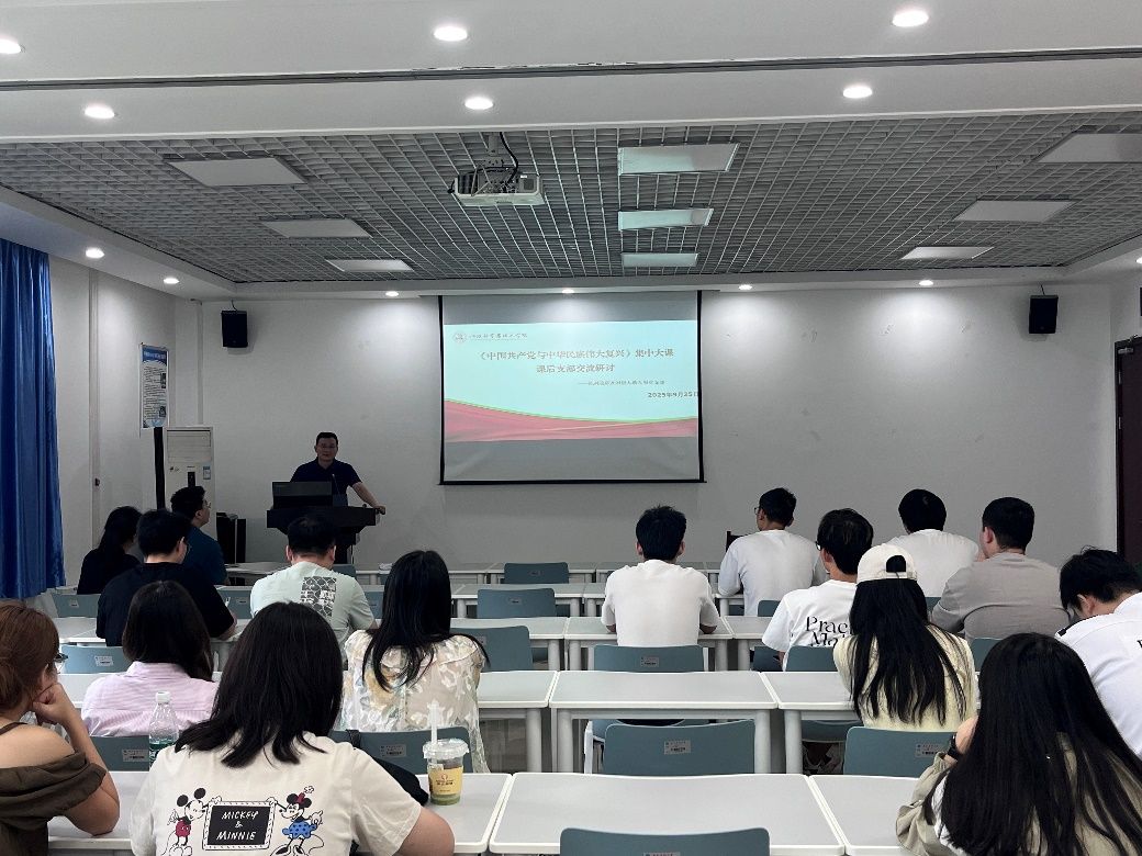 2025年9月25日,硕士生2024级大地无垠党支部在明辨楼D404举行主题为“中国共产党与中华民族伟大复兴”的集中大课交流研讨会暨“拾光小讲堂”书籍分享会。本次活动由支部副书记王鑫同志主持,全体党员参与。