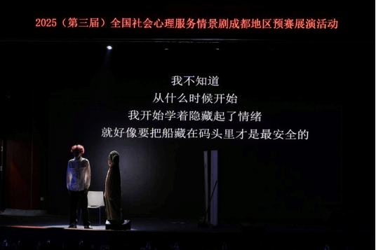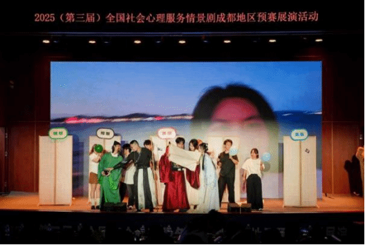 为深入推进社会心理服务体系建设,提升心理健康服务的传播力与影响力,在国家心理健康和精神卫生防治中心、中国人口文化促进会的指导下,9月25日,2025(第三届)全国社会心理服务情景剧成都地区预赛展演活动在成都市心理健康中心学术厅隆重举行。地科院原创心理情景剧《长大》从众多参赛作品中脱颖而出,以第一名的成绩荣获“特别推荐剧目”称号。