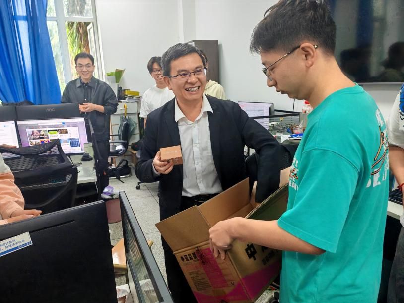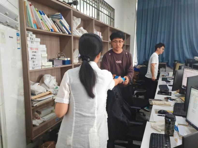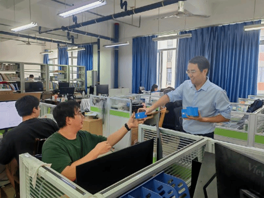 走访过程中,慰问组逐一走进每间办公室,将月饼递到师生手中。院长赵晓明与教职工们热情交流,详细询问近期工作与生活情况,充分肯定他们长期以来为学院发展付出的努力,并鼓励大家再接再厉。副院长刘宏则特别关注研究生的学习进展,勉励同学们珍惜时光,未来为学科发展贡献青春力量。