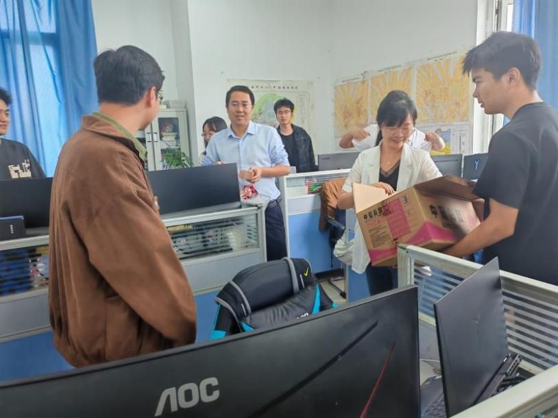 9月29日上午,地球科学与技术学院院长赵晓明、副院长刘宏与教师代表王春华等组成慰问小组,携带精心准备的月饼礼盒,走访学院各办公室与实验室,亲切慰问坚守岗位的教职工和潜心科研的研究生,并为他们送上节日的祝福与关怀。