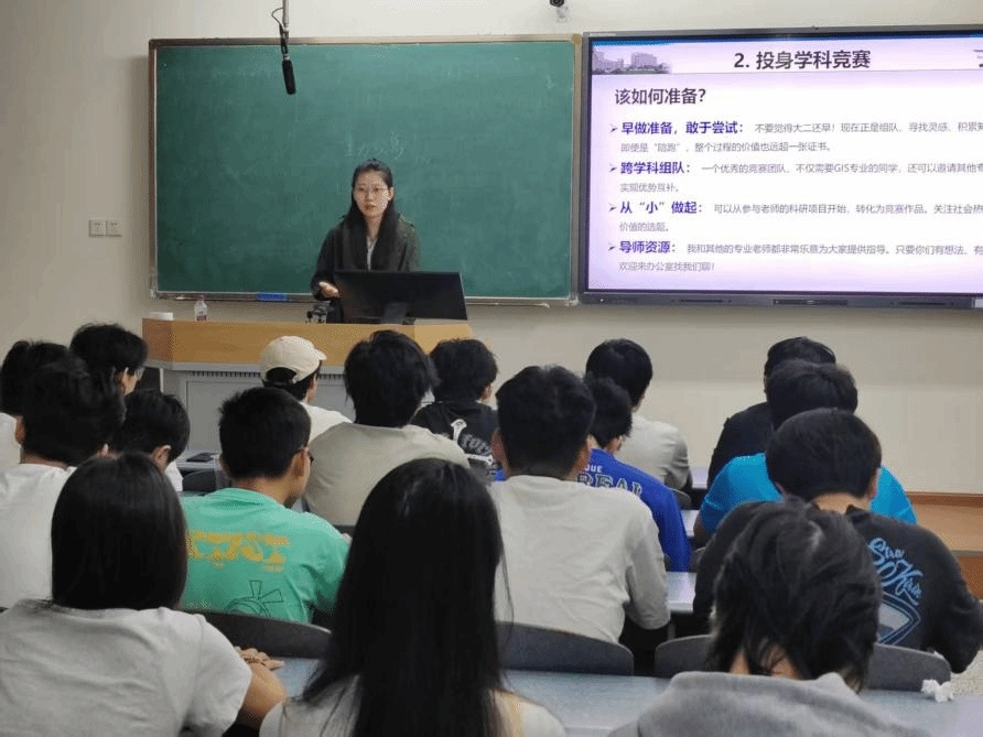 在学科竞赛准备方面,高钰老师细化了实操方法:“建议大家尽早组队,甚至可以尝试跨专业协作——比如联合计算机专业同学补充编程能力,让团队技能更全面;选题可以从‘小而实’的方向切入,比如结合校园地理信息做小型应用项目,或是关注乡村振兴、生态监测等社会热点,让作品既有专业价值,也有现实意义。遇到瓶颈时,学院的专业教师都愿意提供指导,要学会主动借力。”